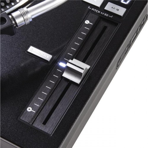 Besides the indestructible and sturdy construction, the turntable does not only cope with the hardest club surroundings, its technical features are as powerful: an ultra powerful, quartz driven direct drive with precise even speed and digital correction emphasizes the Reloop RP-8000's class. The high-resolution pitch (+/- 8%, +/- 16% and +/- 50 %) with a resolution of 0.02% is shown on the LCD and facilitates exact beat matching with long mixes.
