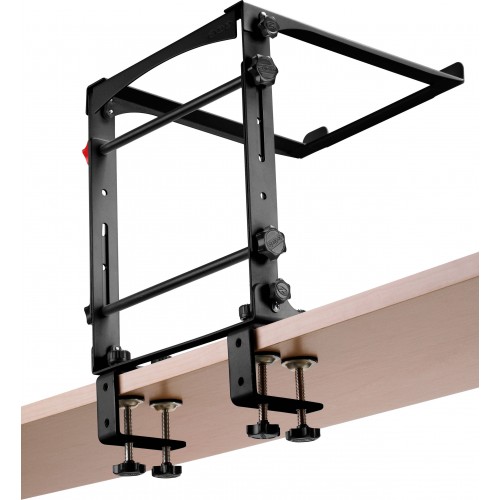 The Zomo LS-10 laptop stand can be cliped easily on desktops or set on top of your DJ booth or set down under your DJ equipment like mixer, turntable, ect.