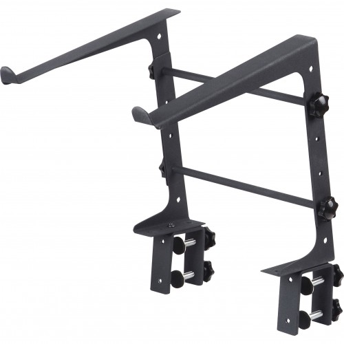 The height can be adjusted individually in 4 different steps, the width in 2 steps. Therefore the Zomo LS-1 works as a perfect bracket for all different laptop models. With the 3 different possiblities of mounting, On-the-top Version, Clip version or simply mounting it on a flightcase, this little helper can be installed very easily.