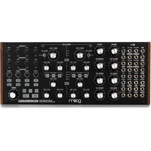 The Moog Subharmonicon is a semi-modular polyrhythmic analog synthesizer that employs a 6-tone sound engine and multi-layered sequencers to explore the world of subharmonics, polyrhythms, and the unique relationships they create.