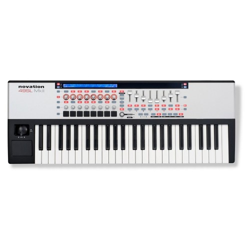 The Novation 49 SL MkII 49-Key Remote MIDI Controller integrates a semi-weighted keyboard with a 144-character display, back-lit LED buttons and encoders. These 56 knobs, faders and buttons can be quickly mapped with the Automap 3 PRO software.