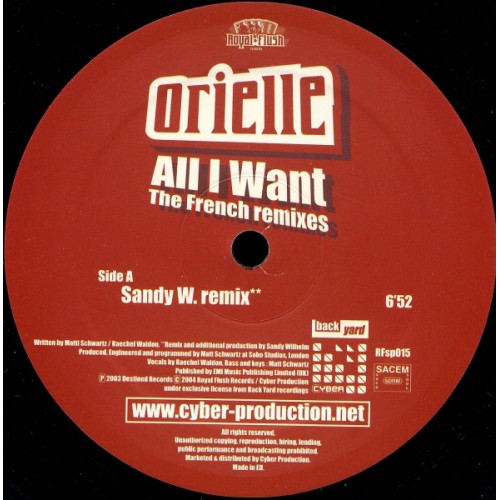 ORIELLE - ALL I WANT THE FRENCH REMIXES BY SANDY W - ROYAL FLUSH RECORDS